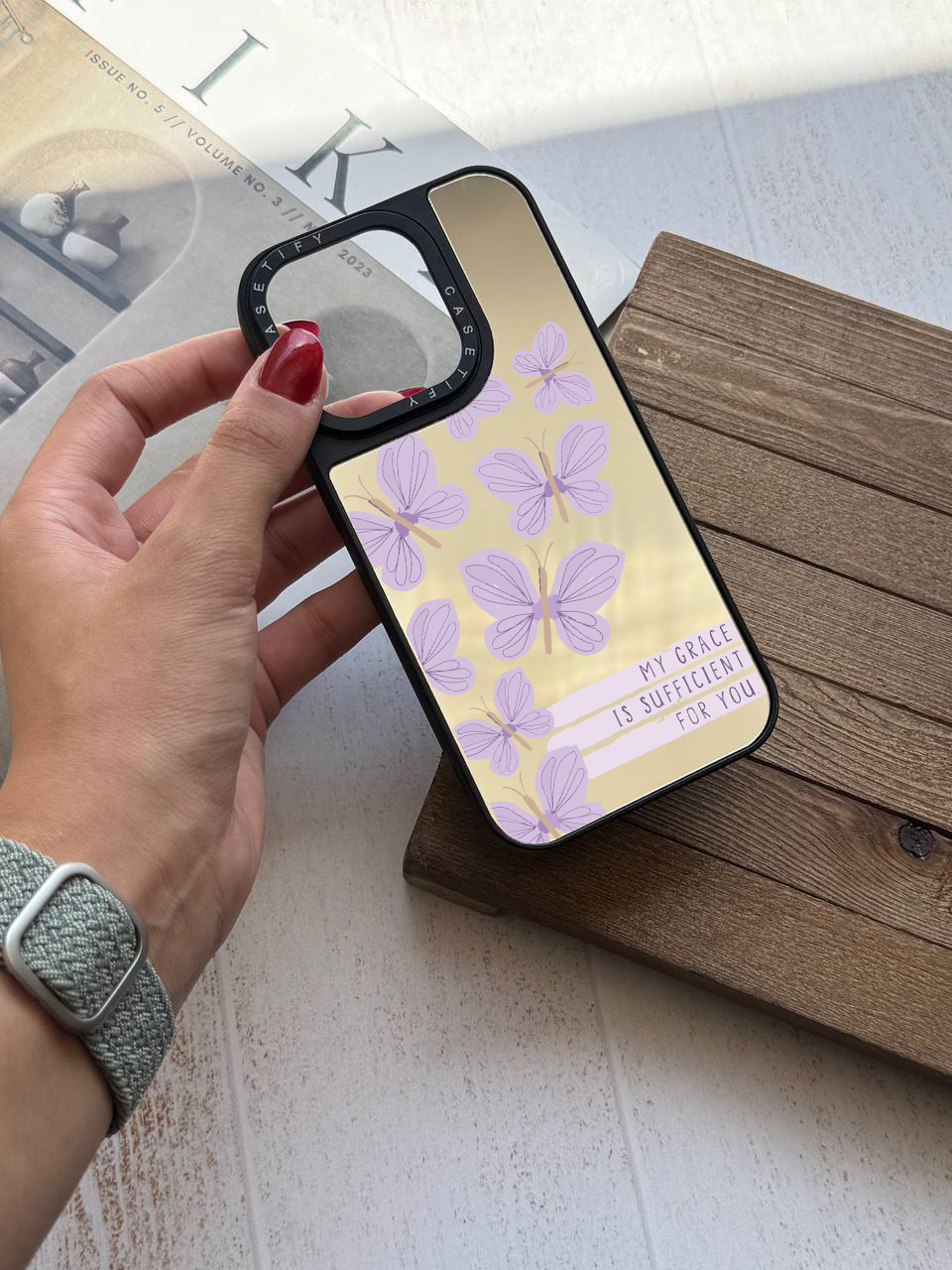 قاب موبایل سفارشی آینه ای | پروانه بنفش (کد 0444)